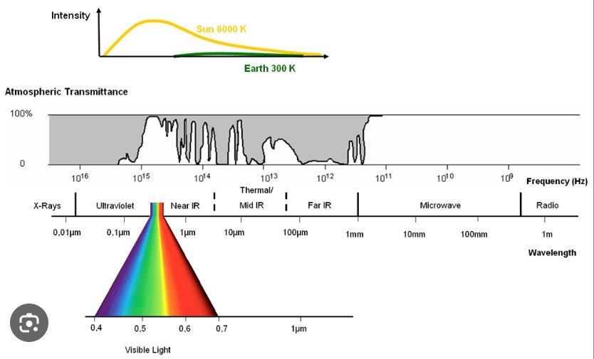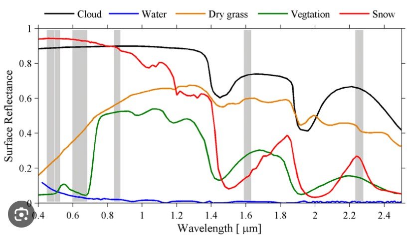 The design of satellite sensors is based on the absorption characteristics of Earth surface materials across all the measurable parts in the EM spectrum.